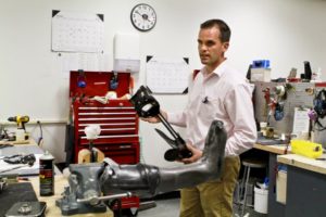 Another important feature is the BiOM’s ability to absorb ground impact at heel strike. An estimated 80 percent of lower-limb prosthesis-wearers experience significant back pain and encounter joint deterioration within five years. The BiOM’s engineering reduces unnatural impact stress, pain, pressure within the prosthetic socket and joint trauma. At the end of the day, BiOM users report they have more energy, less pain, and the feeling of having their leg back. The BiOM is now available for above- as well as below-knee applications.