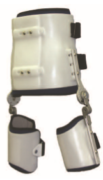 Description: Plastic padded waistband and two joint assemblies connected by shaped leg bars to adjustable plastic thigh bands.